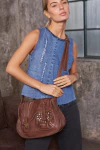 Detalles como las tachas, broches color bronce y la correa regulable le dan un toque urbano, ideal para usar todos los días con looks relajados o cancheros.